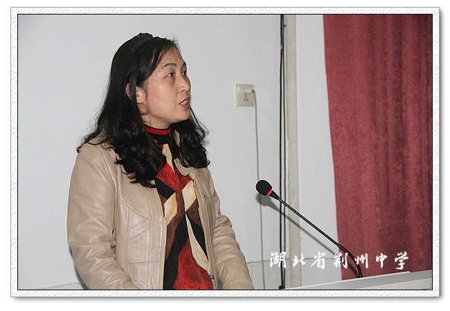 会议首先邀请湖北省“三八”红旗手、荆州市师德模范、荆州市高考先进个人、荆州市“我喜爱的老师”顾琼老师做班主任经验交流。顾琼老师根据参加湖北省第五届楚天中小学卓越班主任高级研修班培训所学并结合自己近二十年的班主任工作经历,以“做一名思路清晰的班主任”为主题进行了交流。顾老师从思路——班级的工作方向;归宿——班级的工作目标;学习——班级的工作保障和创新——班级的工作高度四个方面,通过大量的事例与各位班主任进行了交流,并汇报了自己学以致用所取得的效果,会议热烈而奋进。
