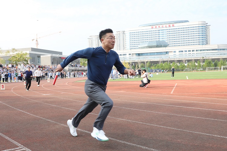 庄严的国歌声后,副校长刘荣显致开幕词,他表示,“体育是一种精神,它赋予我们勇敢、果断、激情;体育是一种财富,它带给我们品质、健康、快乐;体育是一种艺术,它使我们协调、大方、优美。我们要在体育运动中学会协作、学会助人、学会拼搏、学会承受!”
