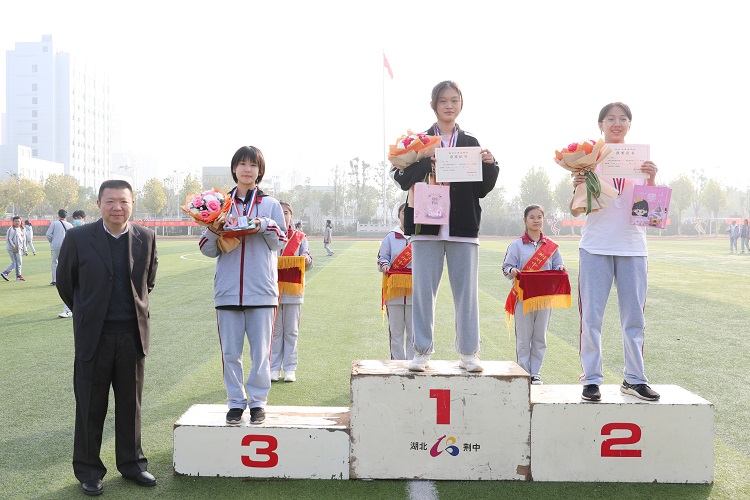 在高一高二年级学生的欢呼与呐喊中,运动会步入尾声。副校长曾伟为本届运动会致闭幕词,他代表组委会对本届运动会取得的成绩表示热烈的祝贺;对全体裁判员、宣传员、安保人员和其他工作人员的辛勤付出表示感谢。同时,鼓励全体同学用强劲健康的体魄、阳光向上的心志、勇于拼搏的干劲去迎接学习上和生活上的新挑战。