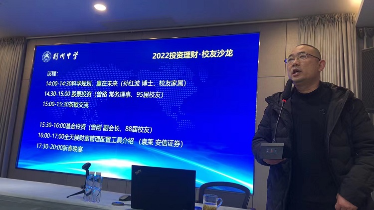 副会长曾刚分享了基金投资的知识。作为国内公募基金的知名专家,曾刚校友在基金选择及购买时机上给校友们给出了中肯的建议。