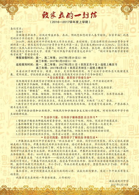 9323彩票2017年寒假致家长的一封信