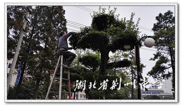 为迎接国庆节的到来,打造美丽的校园环境,总务处安排人员在节前对校园进行绿化美化。绿化工人清除影响校园环境绿化的杂草,对景观树木进行修枝造型。同时,总务处从学校农场花圃拖来盆花装点校园,使校园处处有绿意盎然,鲜花盛开,营造了欢乐祥和的节日氛围。