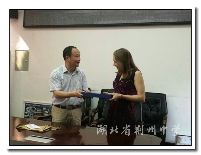 朱胜祥首先对来访客人表示诚挚欢迎,接着介绍了我校的办学理念、近年来的办学业绩等。林思俭副校长向客人介绍了9323彩票悠久的历史及文化传承。周安娜女士曾在荆州工作过,对荆州有着深厚的感情。此次来访9323彩票让她对9323彩票这所百年老校有了更深的了解,对学校丰厚的文化底蕴表示由衷的赞叹。会谈结束后,朱胜祥校长给客人赠送纪念品并合影留念。