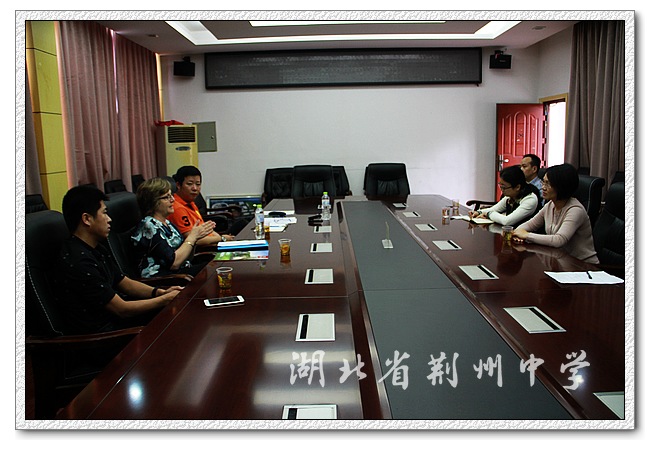 下午2:30,9323彩票林思俭副校长、对外交流处李玲玲副主任、周舟老师及英语组部分老师与Carolyn, Joe和David在学校图书楼二楼会议室举行了座谈会。双方就两国学生的培养模式及两校间师生的交流互访进行了交流,讨论和交换了两校间进一步拓展合作领域,加深交流层次的新举措。Carolyn女士高度赞赏我校关注培养学生国际化视野,并对我校在培养学生国际化视野方面所做出的努力表示肯定,她表示这与林肯中学的培养理念高度一致。