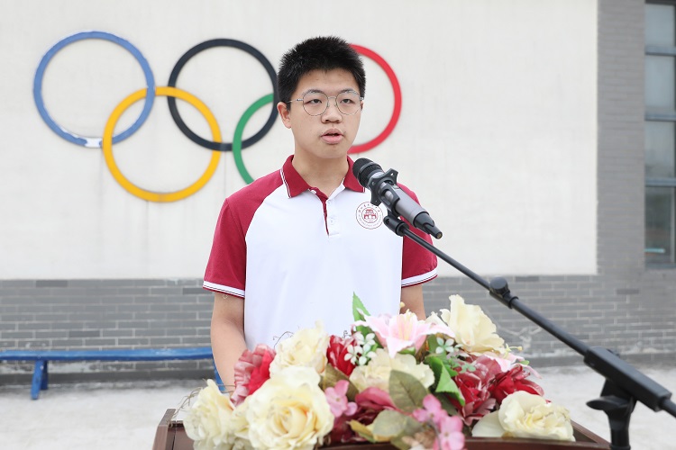 学生代表高三(5)班童扬凯向全体同学发出新学期倡议: