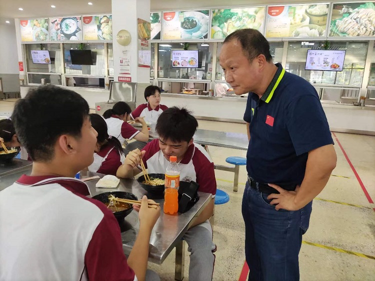 学校党员干部走进学生食堂,做好日常值班、陪餐以及检查工作,确保学生吃得安全、吃得营养、吃得放心。