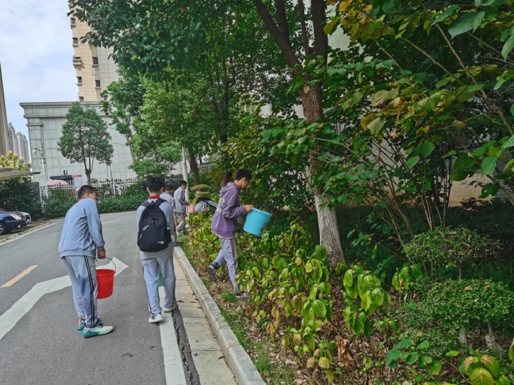 按照学校统一部署,在高一年级全体班主任老师的带领下,各班同学按时到达指定灌溉区域,热情高涨,分工合作,用提前备好的水桶接水给路边的花草树木进行浇灌,精心呵护每一株树苗。学生的辛勤劳动不仅让每一棵树、每一株花都喝足了水,还增强了自身的劳动意识,提升了个人劳动实践技能。