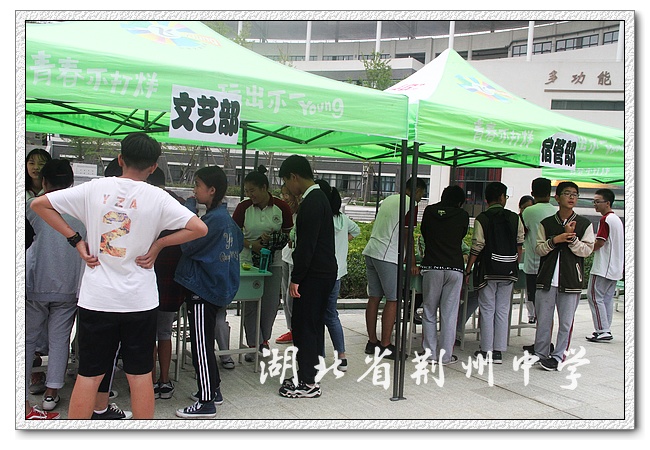 9个社团分别是:书法社、国学社、羽毛球社、街舞社、科技社、寒武纪、动漫社、文学社、摄影社。广播台设两个部门:主播部、编辑部。在招新过程中,各社团用棒棒糖、汉服表演、街舞表演、动漫show、吉他弹唱、科技图片、现场运动、书法作品非常新颖的方式吸引着高一的新同学加入。