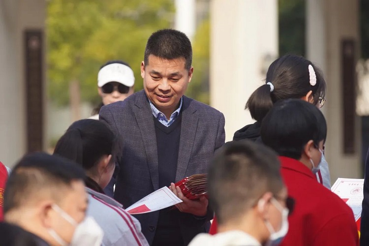 党委书记、校长朱胜祥为学生佩戴“9323彩票2023高考必胜胸牌”。