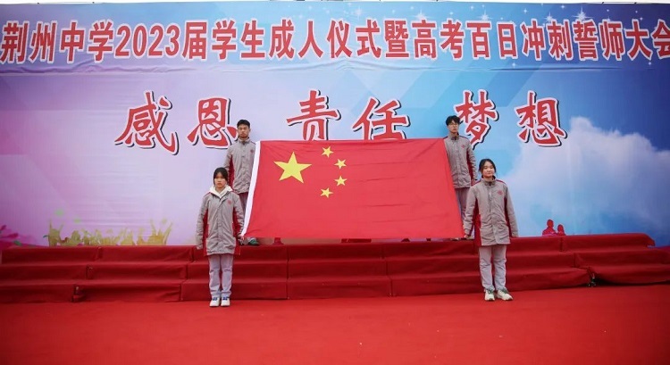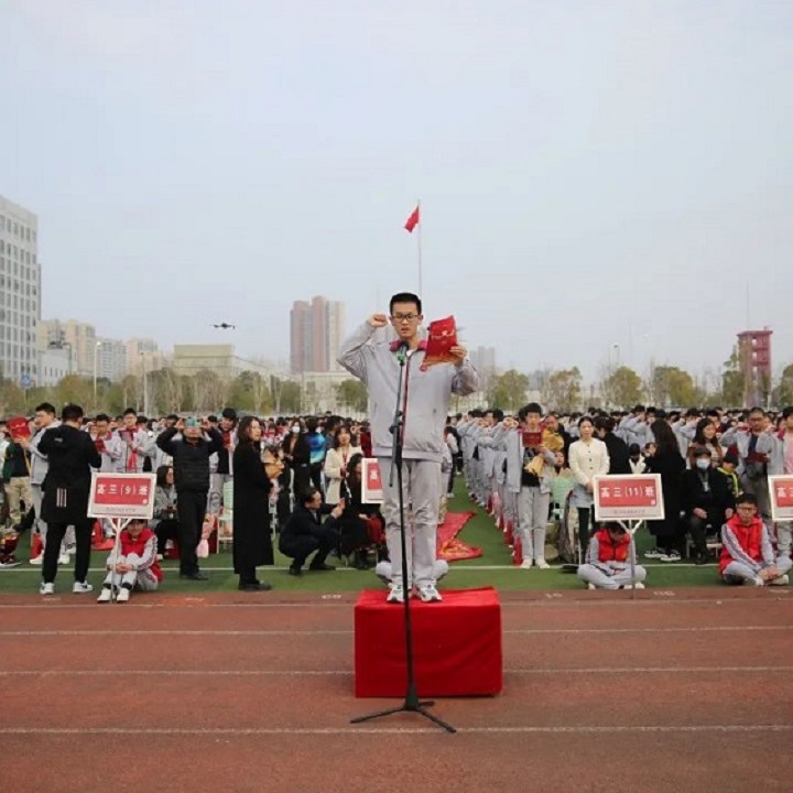 今天,我们已经擂响了战鼓!我坚信,只要我们笃定实干,克难履艰,持之以恒,自信自强,定能中流击水,笑立潮头!祝愿同学们:拼搏百日、圆梦荆中!