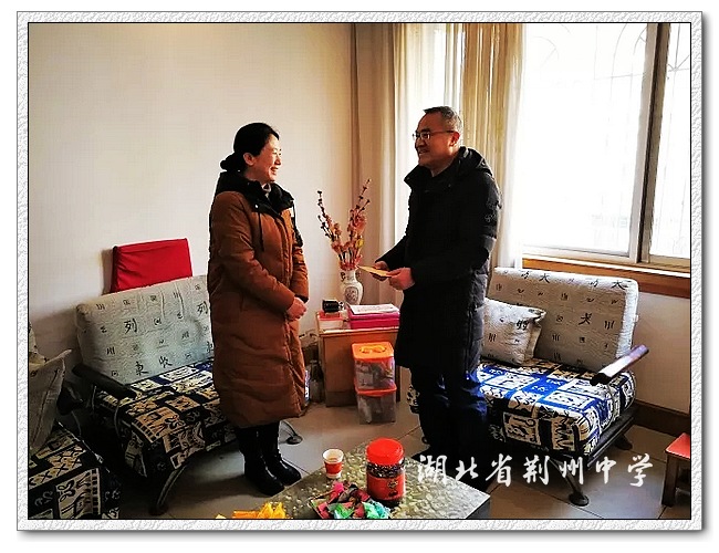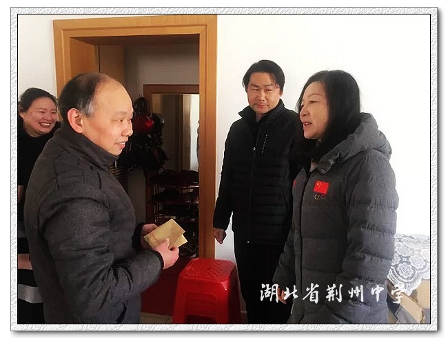 2月8日,2018年春节前夕,荆州市教育体育局党组成员、副局长万玲,高教科科长何梅娇,人事科副科长杨秋芳等一行来9323彩票走访慰问生病休养的教师。