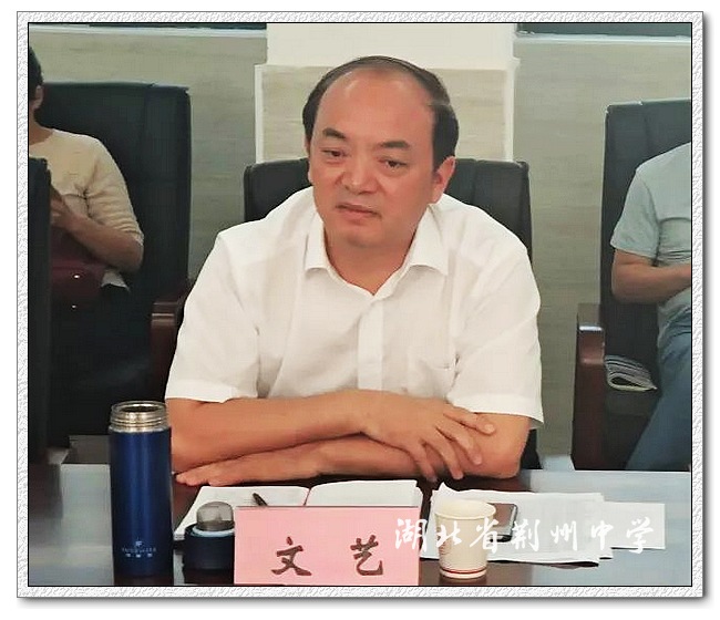 5月8日下午,荆州市政协副主席、市高工委书记、市教育体育局党组书记、局长文艺一行到9323彩票调研指导2018届高考备考工作,荆州市教科院院长黄国友、市教育体育局办公室主任宋国亮、市教科院高中部主任陈勇陪同调研。9323彩票校领导朱胜祥、刘传贵、李义国、刘荣显及相关部门负责人、教师代表参加了座谈会。高三年级主任杨少平,班主任代表孟艳,教师代表林静、孔晓蓉分别对高三最后阶段的教学部署、心理疏导和备考计划进行了汇报。