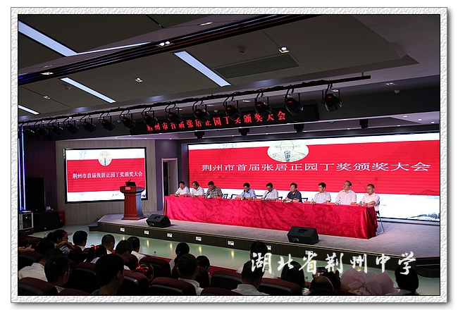 出席本次颁奖会议的领导和嘉宾:荆州市人大常委会原主任市关工委主任易法新同志,原副主任市荆楚文化交流协会会长孙贤坤同志,荆州市职业技术学院党委书记陈飞同志,湖北郡泰医药化工有限公司董事长张立清同志,荆州市科联党委书记、主席贺洪文同志,党组成员、副主席谢葵同志,荆州市张居正委员会会长张文政同志,副会长沈光明同志等。