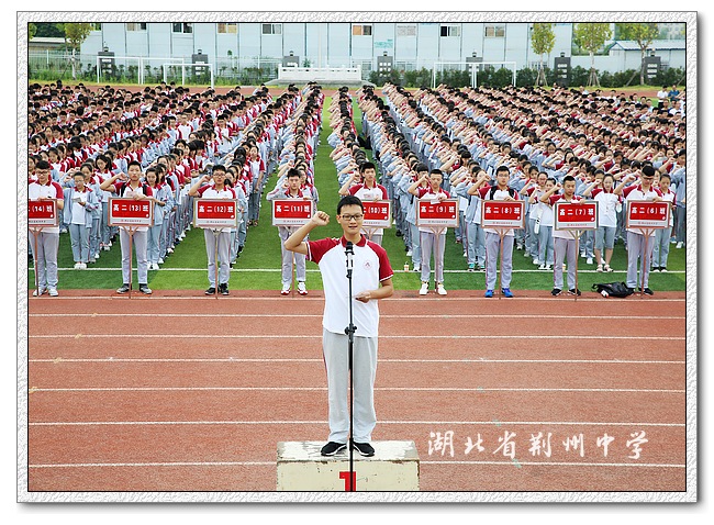 开学典礼上,高三(1)班黄荆州同学带领全校3000多名学生面对校旗宣誓,展示着他们在新学年的激情、信心和希望!