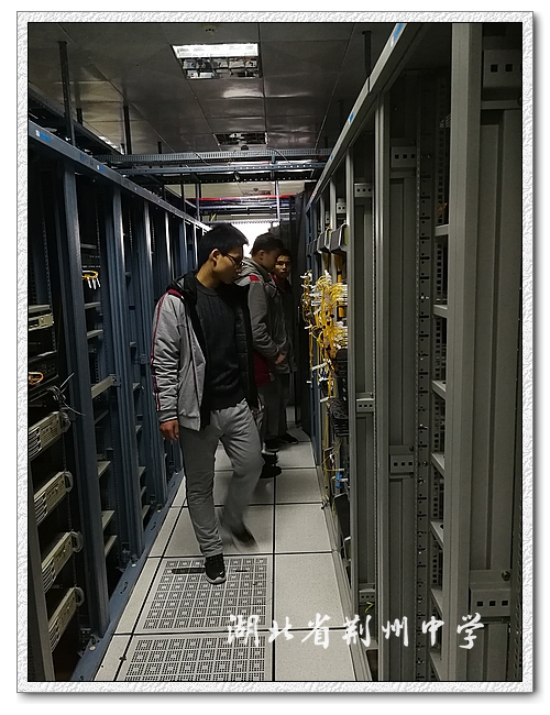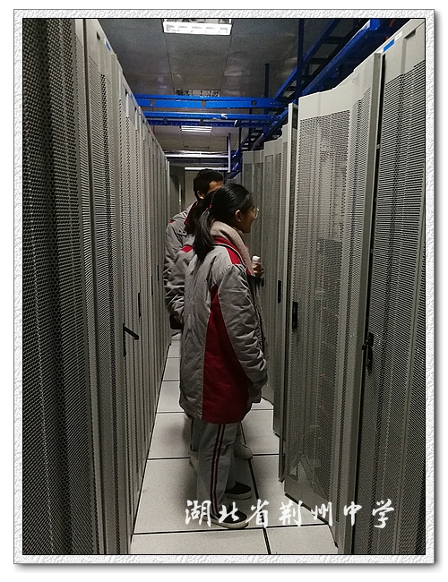 同学们首先参观了一楼的体验中心。新奇的科技手段和室内布置,无不让他们兴奋而投入。随后,大数据中心技术人员同时也是2003届荆中校友张炜向大家介绍了大数据中心和“智慧荆州”荆楚云项目的大致情况和工作特点。谈及岗位对专业能力的要求,他还为同学们做了一次细致的生涯规划的分析指导。接着,同学们相继参观了数据中心机房和配电发电设施,实地了解到网络通讯信号是如何发出、接收、维护的。