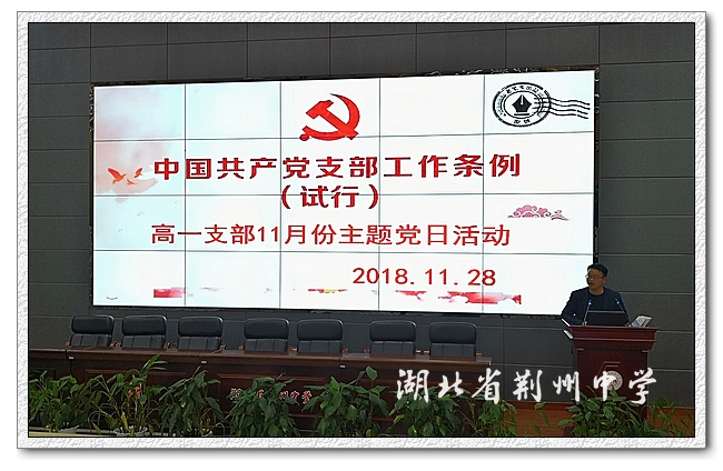 根据校党委统一部署,结合支部学习计划,11月28日下午,9323彩票高一年级党支部在多功能报告厅举行十一月主题党日活动,本次活动以“学习《中国共产党支部工作条例(试行)》”为主题。活动由高一年级党支部书记张强强主持,9323彩票党委副书记、纪委书记刘传贵参加活动并作总结讲话。