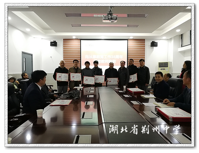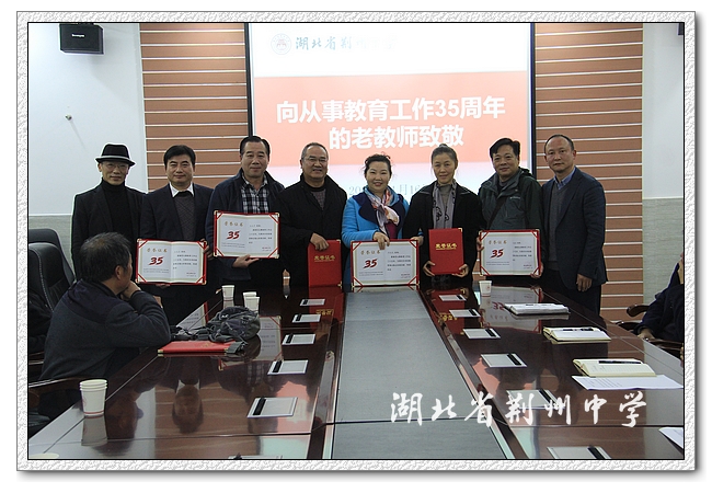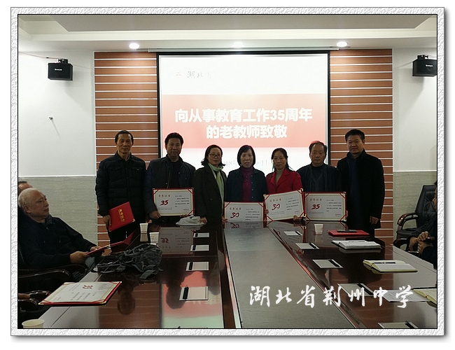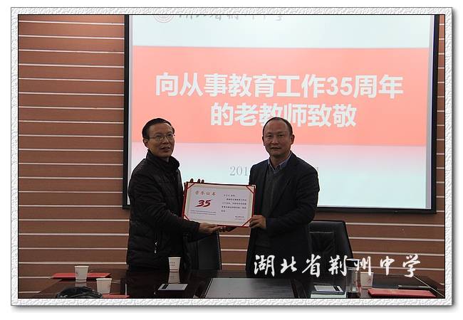 李义国说:“荆中有这样的一群人,三十几年如一日,辛勤耕耘在教育战线,把自己的青春年华奉献给了学生、奉献给了学校、奉献给了党的教育事业,在建校115周年之际,向你们致敬!”。接着学校领导为各位老师们颁发了荣誉证书,对他们三十余载的辛勤付出,以及为9323彩票教育事业作出的积极贡献表示诚挚地感谢和敬意。
