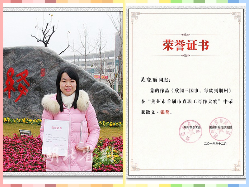 以“文明与你我同行,创建让生活更美”为主题的首届荆州市直职工写作技能大赛由市总工会和荆州日报传媒集团共同主办, 12月初通报了获奖情况,近日颁发了获奖单位的奖牌和获奖个人的荣誉证书。