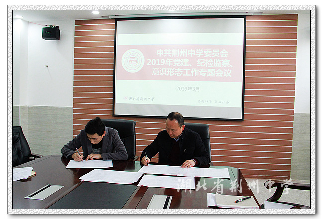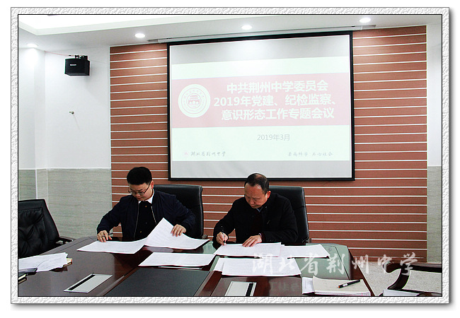 会上,朱胜祥代表学校党委和各支部书记签订了2019年度意识形态责任书和党风廉政建设责任书。