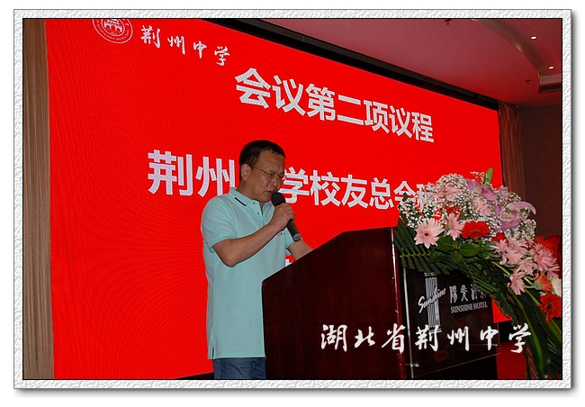 朱胜祥代表全校4000多名师生员工对深圳校友会的成立表示热烈祝贺,向为校友会的成立而默默奉献的理事会成员表示衷心的感谢。他介绍了母校以新校建设为契机,传承百年历史,完善绛帐文化,荣获首届全国文明校园。他强调母校的发展是一代代老师们用心血和汗水创造的,是一届届校友们用真情和奉献促成的,历史不会忘记他们,目前学校正在筹建校史馆,使它成为校史的陈列地、校情的教育地、校友的活动地。他表示学校将瞄准国内一流目标,锐意改革,让荆中的明天更加绚丽多彩,让母校的历史源远流长。