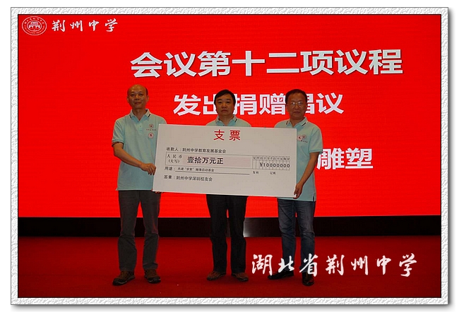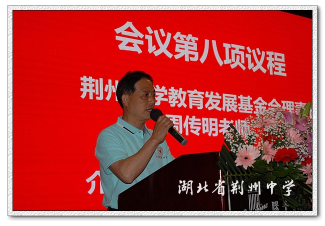 周传明作了题为《以情感交融情感,以爱心回报爱心》的讲话,介绍了两年来学校教育发展基金会和校友会的工作情况,对校友们慷慨捐赠,助推荆中发展表示感谢。