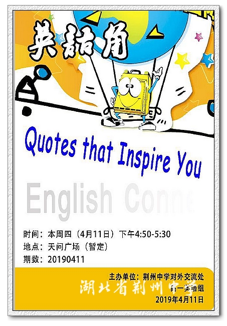 本期英语角活动以“激励你的名言”为主题,围绕大家熟知的名人名言、各自喜爱的名言展开,话题积极向上,充满正能量,吸引了很多热情的同学们。英语角主持人外教Laura老师以简短明了的开场白拉开序幕并分发英文名言列表供学生们的学习交流。接下来学生们以小组为单位,围绕列表上的问题进行交流讨论。