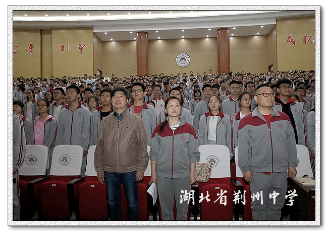 大会开始前,全体师生起立齐唱国歌。整齐响亮的歌声展现了高一年级良好的精神风貌。