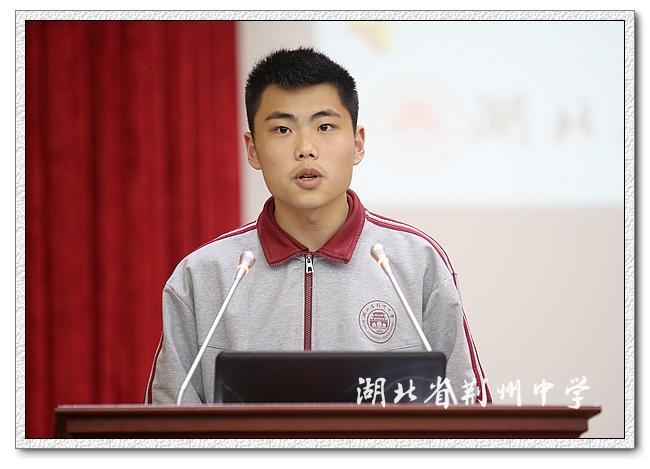 颁奖结束后,高一(5)班刘亚明同学登台发言,与同学们分享了物理学习经验,他提醒大家要做好学科平衡,不要轻视语文英语等文科学习。高一(18)班欧阳汪泽同学取得历史类四门总分第一名的好成绩,他就历史学科与大家做了经验分享,最后他还引用弗罗斯特《未选择的路》中的诗句,激励同学们坚定自己的选择,昂首向前。