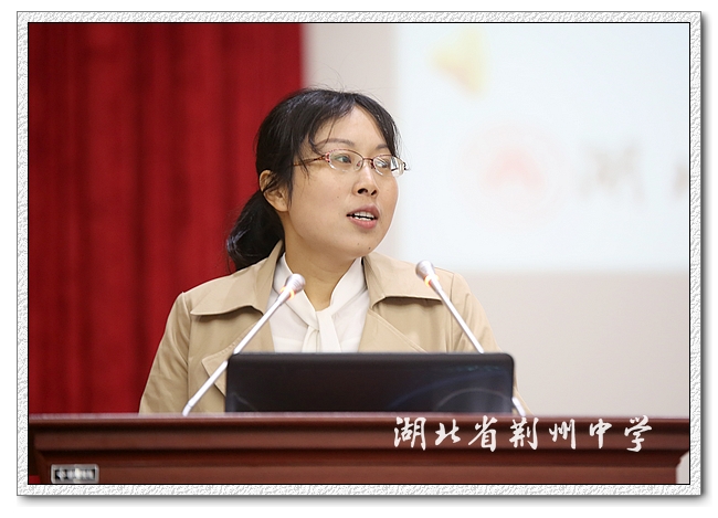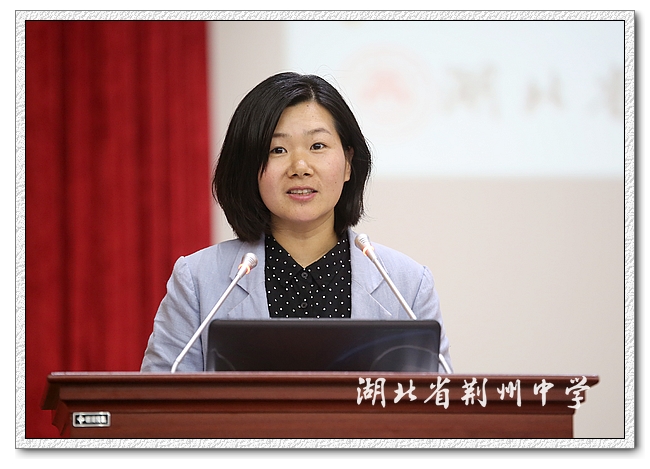 物理教研组长孔晓蓉上台发言,她先谈到同学们学习物理的四种表现,然后从物理的学科意义与如何学好物理两个方面与同学们分享交流。