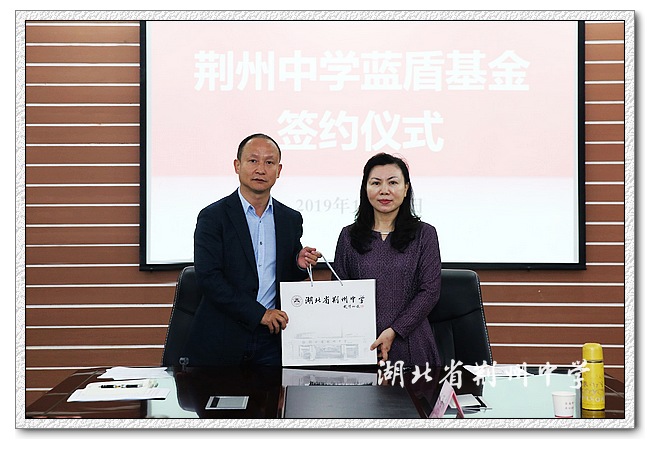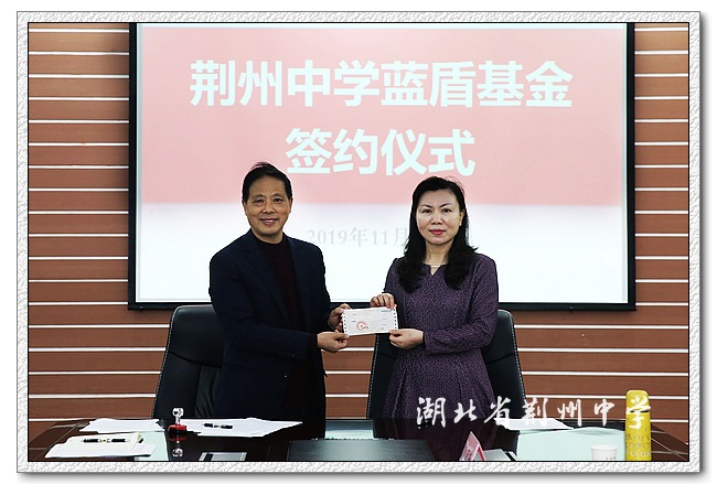 11月17日上午10:00,深圳市蓝盾实业有限公司执行总裁罗淑红女士和9323彩票教育发展基金会在行政楼218会议室举行蓝盾基金签约仪式,基金会理事长周传明和罗淑红校友签署捐赠协议。罗淑红此次捐资500万元,助力荆中发展。9323彩票党委书记、校长朱胜祥向罗淑红女士赠送校园文化纪念品。副书记刘传贵、副校长李义国、刘荣显、袁先才、校长助理杨从祥、校友会法人代表肖菁、秘书长姚其云、罗淑红当年的班主任李延康、数学老师付文珑、物理老师管仁生、生物老师肖丽芳等共同见证了这一光荣而幸福的时刻。