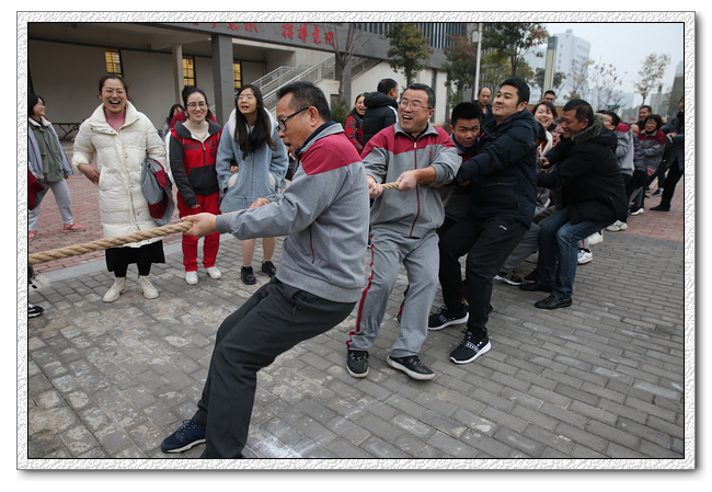 拔河比赛参赛队以年级为组别,共有高一年级、高二年级、高三年级、行政后勤四个队,当比赛的哨声响起,只见参赛的队员们紧握长绳,同心协力,顽强拼搏,卯足了劲拼命往后拉,尤其是在胜负难分的时刻,大家毫不退却,咬紧牙关,坚持拼搏到底,未参赛的教职工和前来观战的学生们自发组成啦啦队为比赛队员呐喊加油,无论是场上还是场下,热情高涨,富有节奏的呐喊声、加油声,在荆中上空久久回荡......